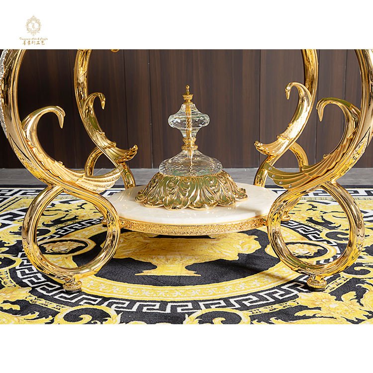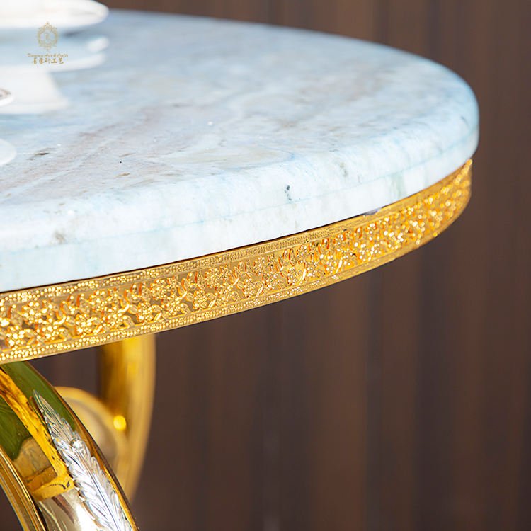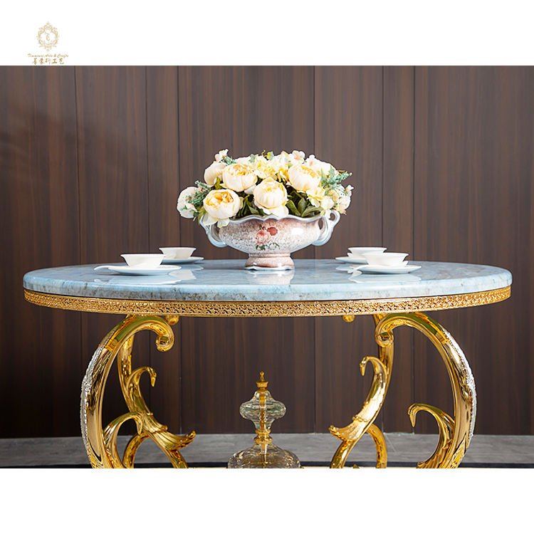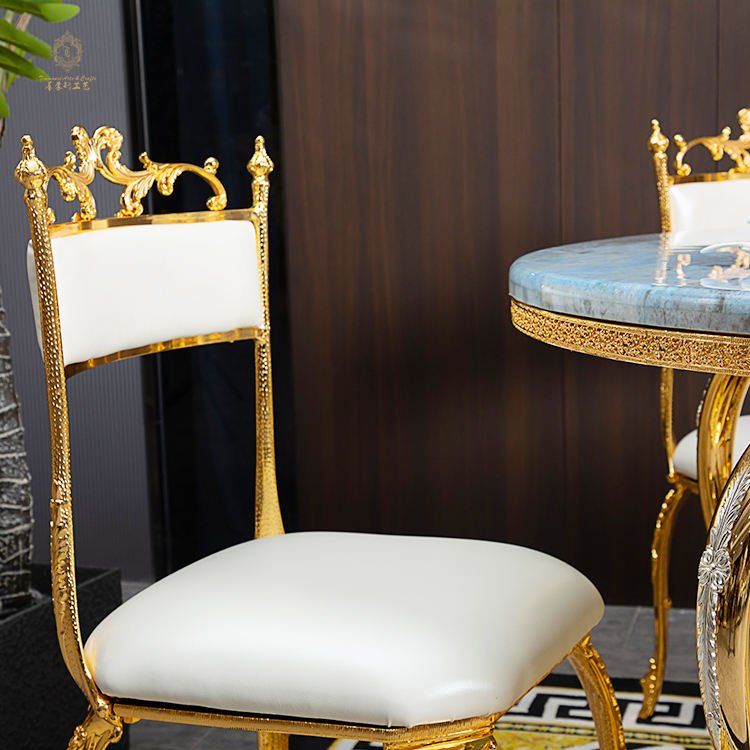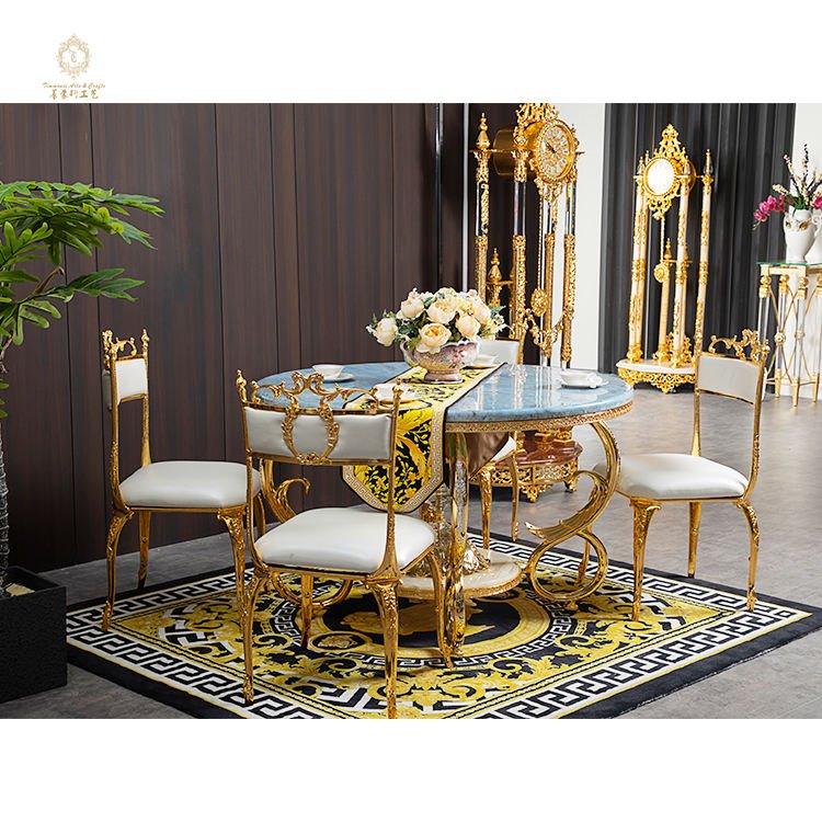 Elegant Modern European Design Wedding Home Dining Table with Round Marble Top and 4 6 Chairs Golden Copper Frame Hotel Use