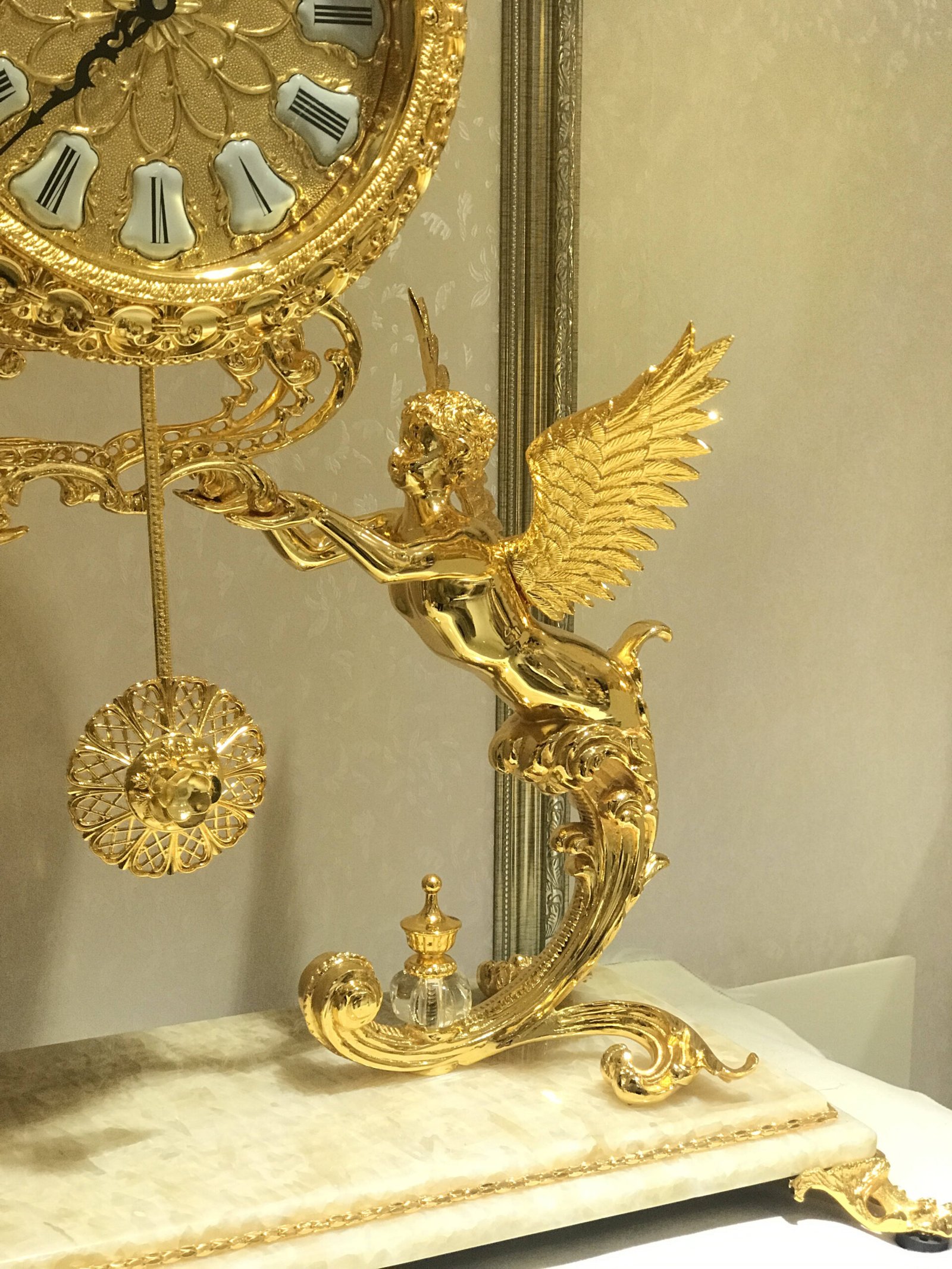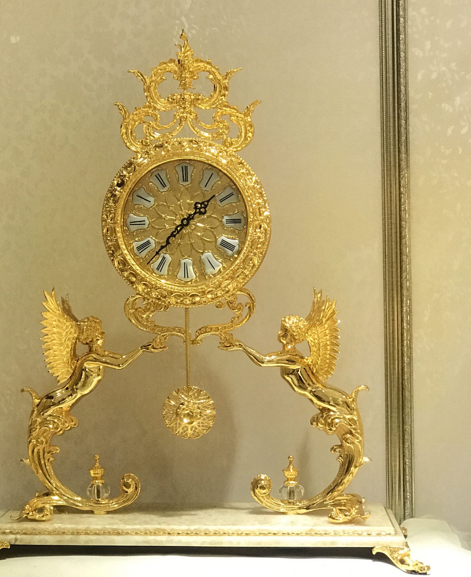 European Luxury Style Table Clock Home Decoration Angel Desk&Table Clock Golden Crystal Table Clock