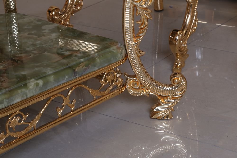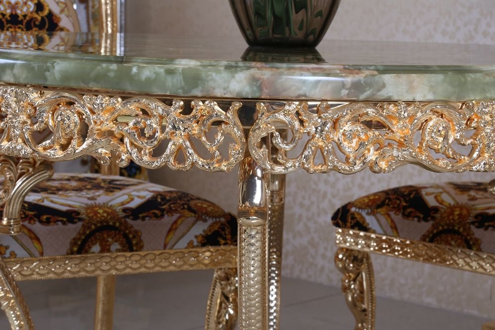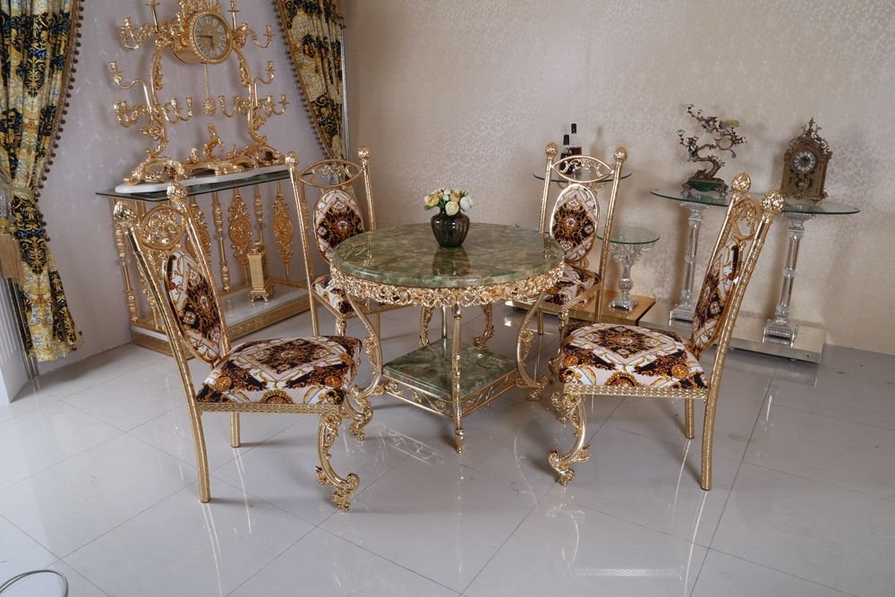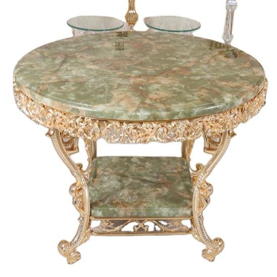 Royal Luxury Elegant Wedding Table Hotel Decoration Carved Table Set Golden Copper Round Marble Dining Table